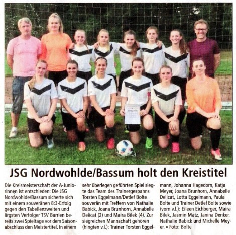 Nordwohlde/Bassum. Glückwunsch an die A-Juniorinnen der JSG Nordwohlde/Bassum! Vorzeitig sicherten sie sich die Kreismeisterschaft.
