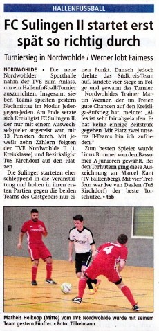 Nordwohlde. Zum Blitz-Hallenturnier in die Ende Juni 2017 fertiggestellte Mehrzwecksporthalle hatte der TVE Nordwohlde eingeladen.