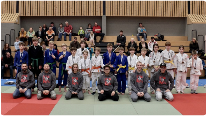 Im Rahmen der Siegerehrung vor der mit Eltern, Angehörigen und Freunden ganz ansehnlich gefüllten Zuschauertribüne gab es zudem in diesem Jahr auch eine ganze Reihe neuer farbiger Gürtel für die Nachwuchssportler, die den jeweiligen Lernfortschritt dokumentieren.